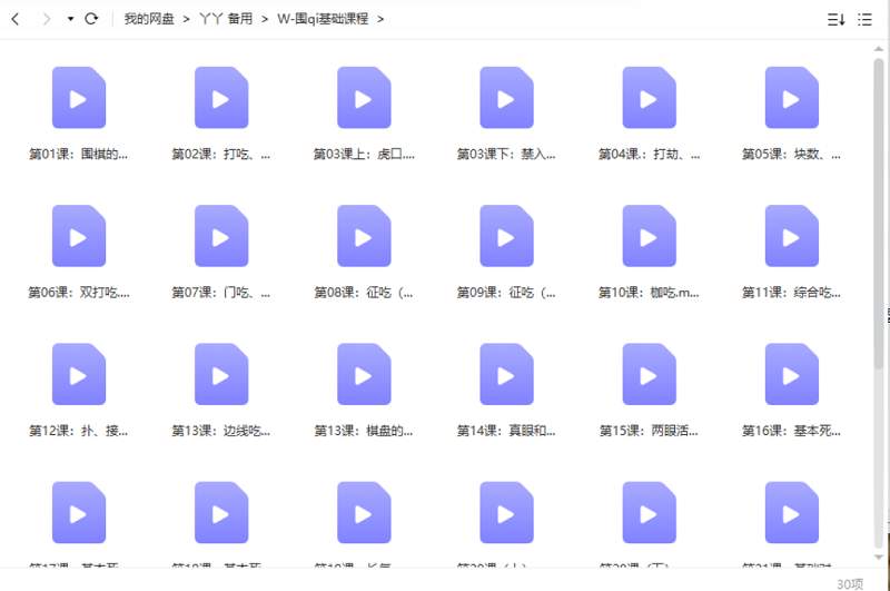 本资源为围棋入门到精通30节教学课程视频合集[MP4]百度云网盘下载,本次资源格式为MP4,做压缩包处理,避免资源丢失,不要直接在网盘解压,请先保存下载再解压便可播放。