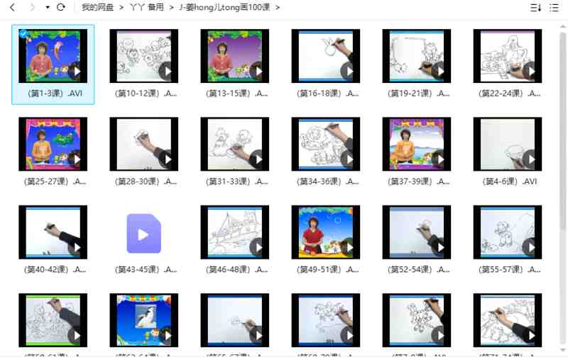 本资源为《姜宏儿童画100课》简笔画教学课程视频合集[AVI]百度云网盘下载,本次资源格式为AVI,做压缩包处理,避免资源丢失,不要直接在网盘解压,请先保存下载再解压便可播放。(保存到自己网盘后,支持在线观看)