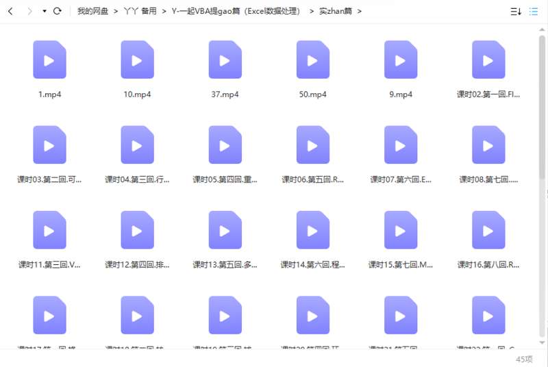 本资源为网易云课堂《杨老师excel vba提高篇+实战篇》Excel教学视频合集[MP4]百度云网盘下载,本次资源格式为MP4,做压缩包处理,避免资源丢失,不要直接在网盘解压,请先保存下载再解压便可播放。(保存到自己网盘后,支持在线观看)