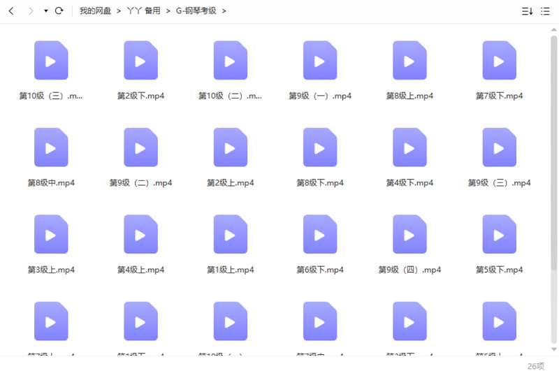 本资源为全国钢琴考级培训教学课程视频全26集打包[MP4]百度云网盘下载,本次资源格式为MP4,做压缩包处理,避免资源丢失,不要直接在网盘解压,请先保存下载再解压便可播放。(保存到自己网盘后,支持在线观看)