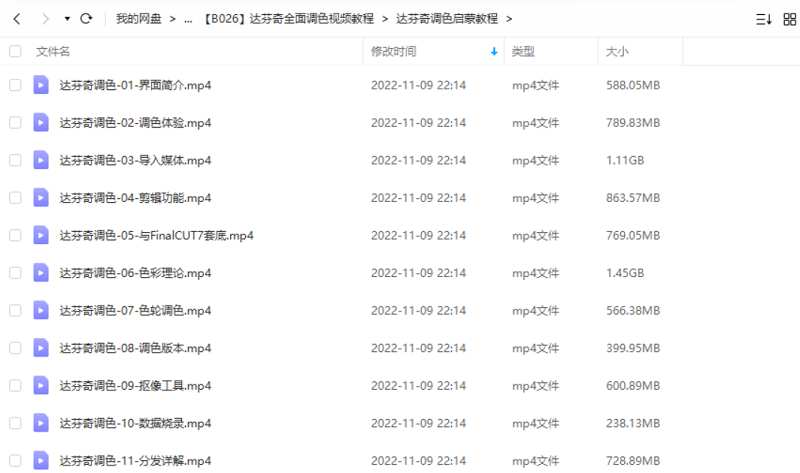 本资源为DaVinci达芬奇全面调色教程共11个视频合集[MP4]百度云网盘下载,本次资源格式为MP4,做压缩包处理,避免资源丢失,不要直接在网盘解压,请先保存下载再解压便可播放。(保存到自己网盘后,支持在线观看)