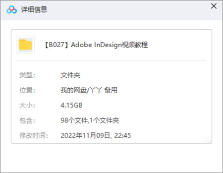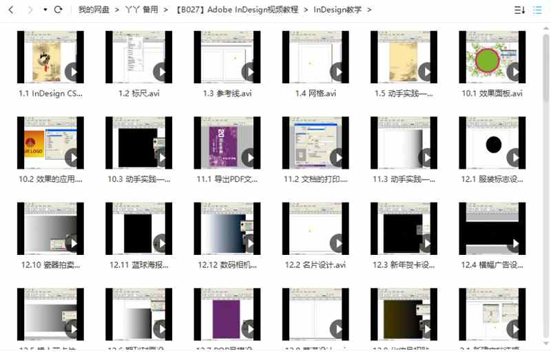 本资源为Adobe InDesign教学课程共98个视频大合集[AVI]百度云网盘下载,本次资源格式为AVI,做压缩包处理,避免资源丢失,不要直接在网盘解压,请先保存下载再解压便可播放。(保存到自己网盘后,支持在线观看)