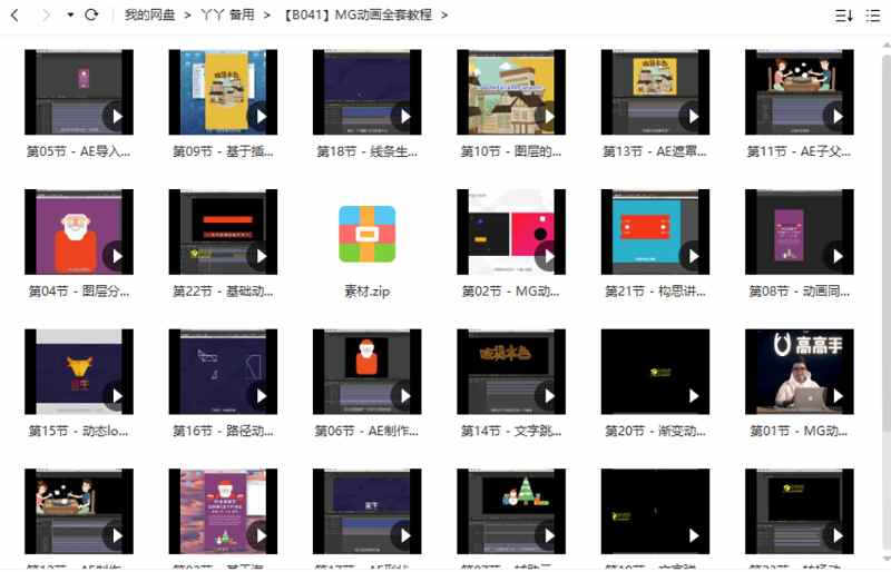 本资源为动态图形(MG动画)23节教程视频+素材合集[MP4]百度云网盘下载,本次资源格式为MP4,做压缩包处理,避免资源丢失,不要直接在网盘解压,请先保存下载再解压便可播放。(保存到自己网盘后,支持在线观看)
