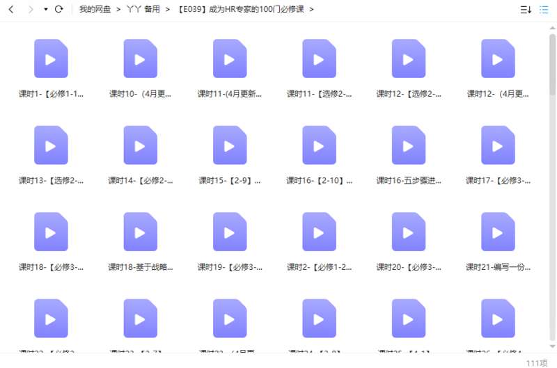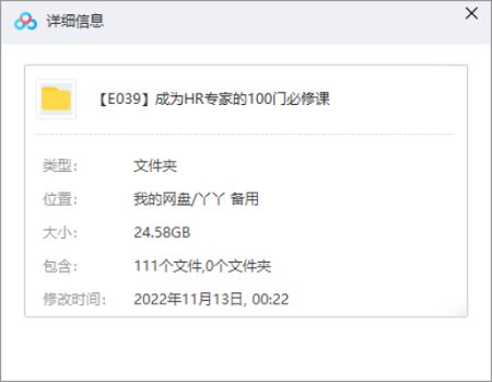 本资源为成为HR专家的100门必修课教程视频合集打包[MP4]百度云网盘下载,本次资源格式为MP4,做压缩包处理,避免资源丢失,不要直接在网盘解压,请先保存下载再解压便可播放。(保存到自己网盘后,支持在线观看)