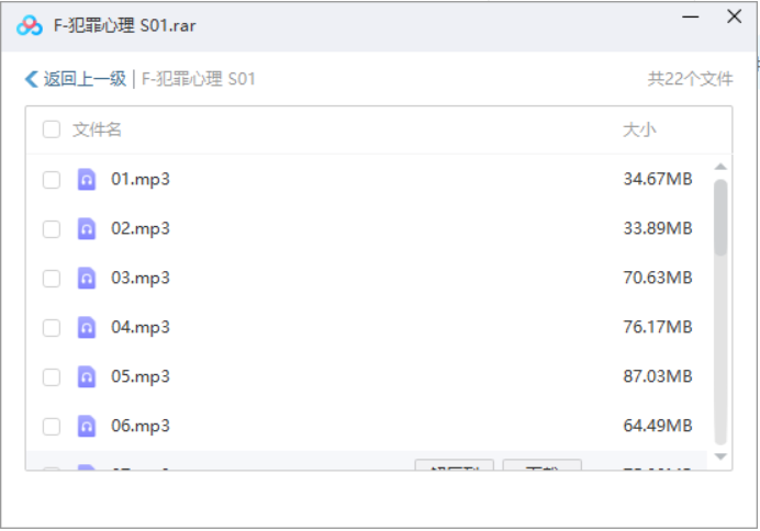 本资源为长洱扛鼎之作《犯罪心理》第1季有声小说全集音频合集[MP3]百度云网盘下载,有声小说格式为MP3,资源做压缩包处理,为避免资源丢失,不要在线解压,请先保存在下载解压便可播放试听。