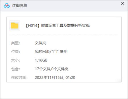 本资源为微博运营工具及数据分析实战教学课程17个视频合集[MP4]百度云网盘下载,本次资源格式为MP4,做压缩包处理,避免资源丢失,不要直接在网盘解压,请先保存下载再解压便可播放。(保存到自己网盘后,支持在线观看)