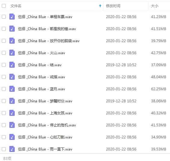 本资源为伍佰83首精品流行发烧歌曲合集打包[WAV/4.06GB]百度云网盘下载 ,包含伍佰83首精品流行发烧歌曲合集,歌曲格式为WAV,按专辑做压缩包处理,为避免资源丢失,不要在线解压,请先保存在下载解压便可播放试听。
