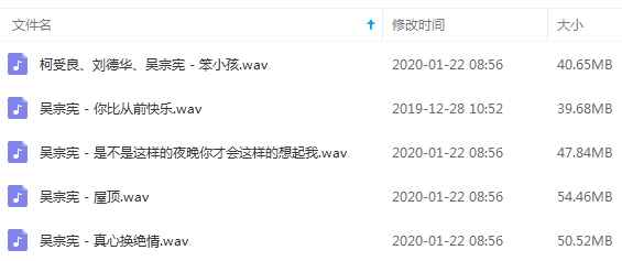 本资源为吴宗宪5首经典流行发烧歌曲合集打包[WAV/233.15MB]百度云网盘下载,包含吴宗宪5首经典流行发烧歌曲合集,歌曲格式为WAV,按专辑做压缩包处理,为避免资源丢失,不要在线解压,请先保存在下载解压便可播放试听。