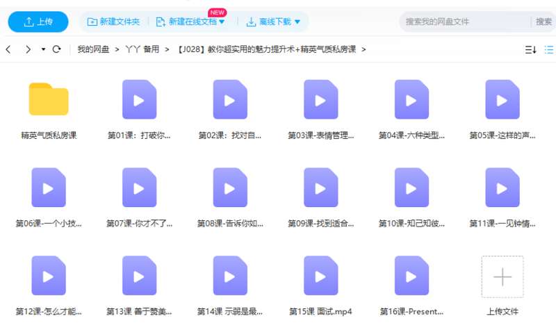 本资源为教你超实用的魅力提升术+精英气质私房课[MP4]百度云网盘下载,本次资源格式为MP4,做压缩包处理,避免资源丢失,不要直接在网盘解压,请先保存下载再解压便可播放。(保存到自己网盘后,支持在线观看)