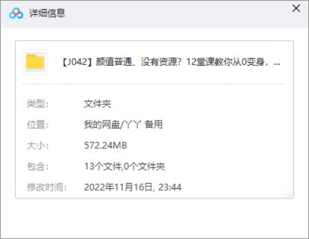 本资源为颜值普通、没有资源?12堂课教你从0变身,成为超级带货网红博主[MP4]百度云网盘下载,本次资源格式为MP4,做压缩包处理,避免资源丢失,不要直接在网盘解压,请先保存下载再解压便可播放。(保存到自己网盘后,支持在线观看)