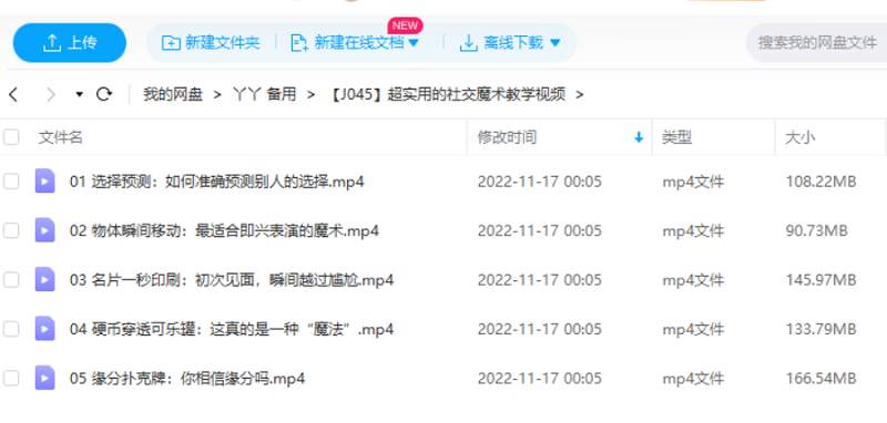 本资源为超实用的社交魔术教学课程视频打包[MP4]百度云网盘下载,本次资源格式为MP4,做压缩包处理,避免资源丢失,不要直接在网盘解压,请先保存下载再解压便可播放。(保存到自己网盘后,支持在线观看)