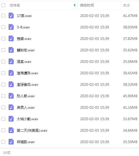本资源为谢安琪39首经典流行发烧歌曲合集打包[WAV/1.53GB]百度云网盘下载 ,包含谢安琪39首经典流行发烧歌曲合集,歌曲格式为WAV,按专辑做压缩包处理,为避免资源丢失,不要在线解压,请先保存在下载解压便可播放试听。