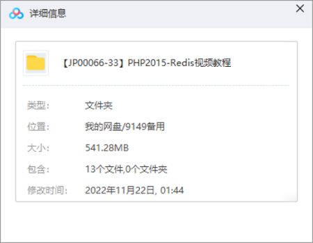 本资源为《PHP-Redis视频教学》课程视频合集[WMV]百度云网盘下载,本次资源格式为WMV,做压缩包处理,避免资源丢失,不要直接在网盘解压,请先保存下载再解压便可播放。