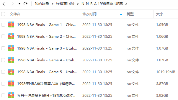 本资源为1998年NBA总决赛公牛VS爵士1-6场英语原声视频打包[MP4]百度云网盘下载,本次资源格式为MP4,做压缩包处理,避免资源丢失,不要直接在网盘解压,请先保存下载再解压便可播放。