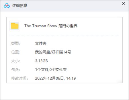 本资源为《楚门的世界(The Truman Show)》BD 英语内嵌中文字幕1080P画质[MP4]百度云网盘下载,本次资源格式为MP4,做压缩包处理,避免资源丢失,不要直接在网盘解压,请先保存下载再解压便可播放。(保存到自己网盘后,支持在线观看)