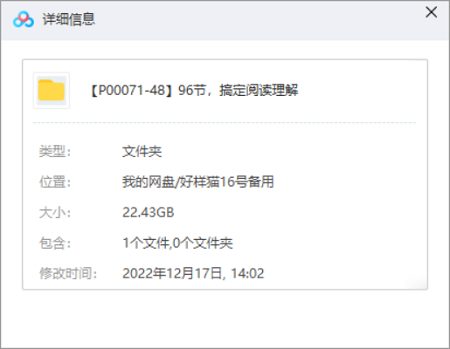 本资源为好芳法课堂王芳老师主讲《96节,搞定阅读理解》全集课程视频[MP4]百度云网盘下载,本次资源格式为MP4,做压缩包处理,避免资源丢失,不要直接在网盘解压,请先保存下载再解压便可播放。