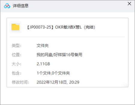本资源为《OKR敏捷绩效管理》完结版课程视频+课件合集[MP4/PDF]课程百度云网盘下载,本次资源格式为MP4+PDF,做压缩包处理,避免资源丢失,不要直接在网盘解压,请先保存下载再解压便可播放。