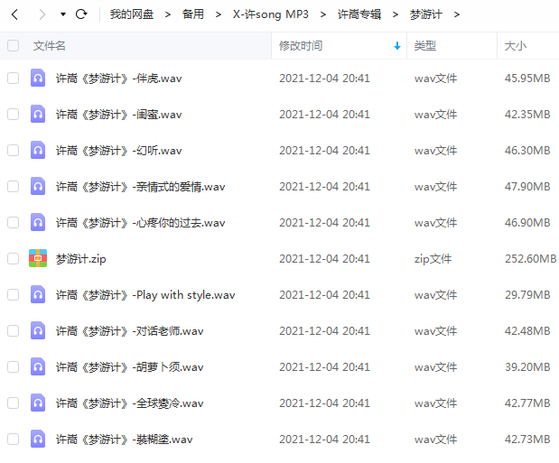 本资源为许嵩/Vae专辑精选歌曲合集-8张专辑(2009-2021)无损音乐打包[WAV/FLAC/MP3/3.45GB]百度云网盘下载,一共收录许嵩8专辑歌曲,歌曲格式为WAV/FLAC/MP3,按专辑做压缩包处理,为避免资源丢失,不要在线解压,请先保存在下载解压便可播放试听。