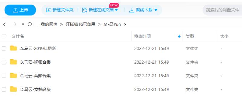 本资源为马云讲座视频+音频+电子书大合集打包[MP4/RM/AVI/MP3/PDF/TXT]百度云+阿里云网盘下载,本次资源格式为MP4/RM/AVI/MP3/PDF/TXT,做压缩包处理,避免资源丢失,不要直接在网盘解压,请先保存下载再解压便可播放。