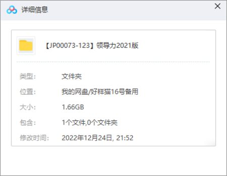 本资源为樊登《可复制的领导力2021版》全集课程视频[MP4]百度云网盘下载,本次资源格式为MP4,做压缩包处理,避免资源丢失,不要直接在网盘解压,请先保存下载再解压便可播放。