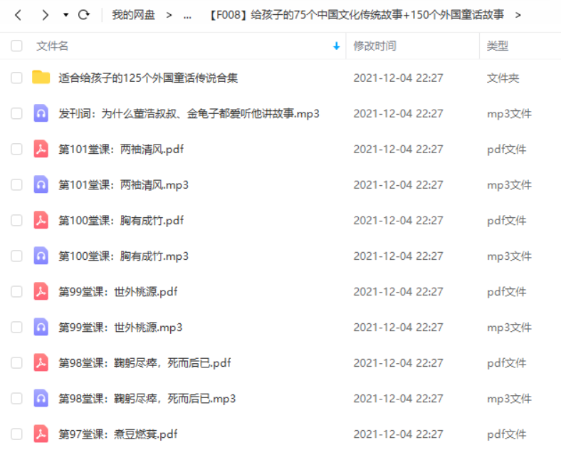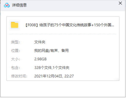 本资源为给孩子听的《中国文化传统和外国童话》225个故事音频合集[MP3]百度云网盘下载,本次资源格式为MP3,资源做压缩包处理,为避免资源丢失,不要在线解压,请先保存在下载解压便可播放试听。