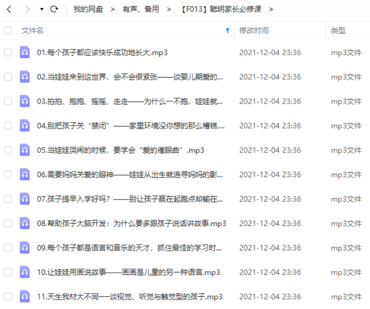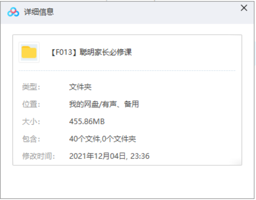 本资源为聪明家长必修课程40个有声读物音频大合集打包[MP3]百度云网盘下载,本次资源格式为MP3,资源做压缩包处理,为避免资源丢失,不要在线解压,请先保存在下载解压便可播放试听。