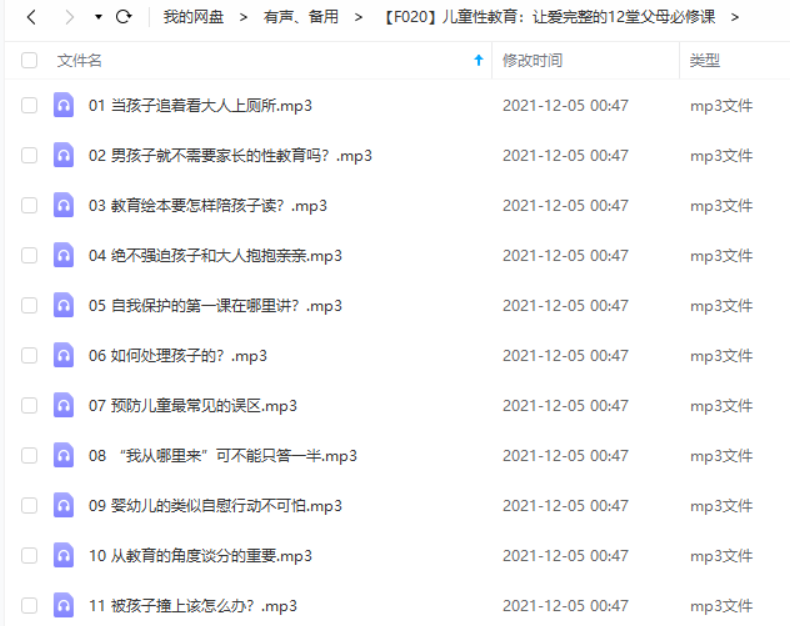 本资源为《儿童性教育》父母必修的12堂课程有声读物音频合集[MP3]百度云网盘下载,有声小说格式为MP3,资源做压缩包处理,为避免资源丢失,不要在线解压,请先保存在下载解压便可播放试听。