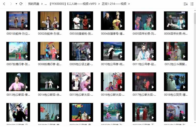本资源为中国戏曲之二人转经典唱段2000余个视频+800余个音频大合集[MP4/AVI/MP3]百度云网盘下载,本次资源格式为MP4/AVI/MP3,做压缩包处理,避免资源丢失,不要直接在网盘解压,请先保存下载再解压便可播放。