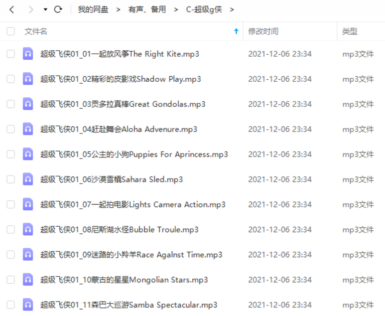 本资源为儿童动画《超级飞侠》有声读物全集音频合集[MP3]百度云网盘下载,本次资源格式为MP3,资源做压缩包处理,为避免资源丢失,不要在线解压,请先保存在下载解压便可播放试听。
