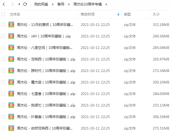 音乐专辑:周杰伦歌曲合集-《10周年珍藏版》10张专辑