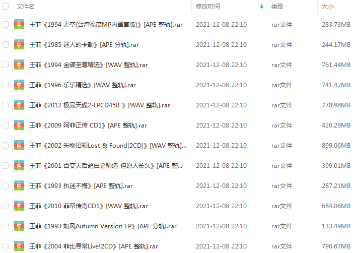 音乐专辑:王菲专辑精选歌曲合集-极品天碟86张专辑
