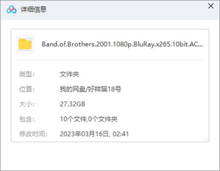 本资源为美国电视连续剧《兄弟连》全10集英语中文字幕1080P画质合集[MKV]百度云网盘下载,本次资源格式为MKV,做压缩包处理,避免资源丢失,不要直接在网盘解压,请先保存下载再解压便可播放。(保存到自己网盘后,支持在线观看)