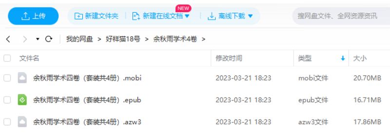 本资源为《余秋雨学术四卷》系列1-4册全册电子书合集[EPUB/MOBI/AWZ3]百度云网盘下载,本次资源格式为EPUB/MOBI/AWZ3,做压缩包处理,避免资源丢失,不要直接在网盘解压,请先保存下载再解压便可观看。