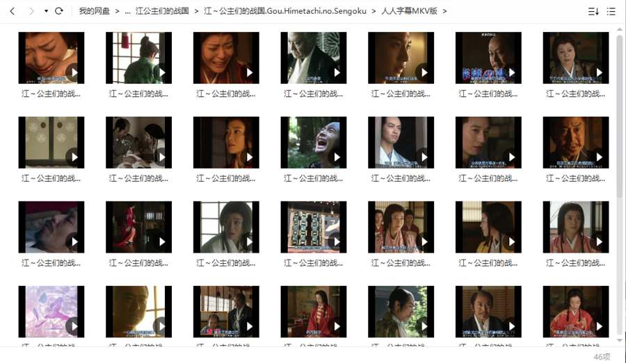 本资源为《江:公主们的战国》全46集日语中文字幕高清合集[MKV]百度云网盘下载,本次资源格式为MKV,做压缩包处理,避免资源丢失,不要直接在网盘解压,请先保存下载再解压便可播放。(保存到自己网盘后,支持在线观看)