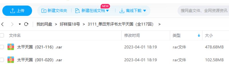 本资源为单田芳单部评书作品《太平天国》全117回音频合集[MP3]百度云网盘下载,本次资源格式为MP3,做压缩包处理,避免资源丢失,不要直接在网盘解压,请先保存下载再解压便可播放。