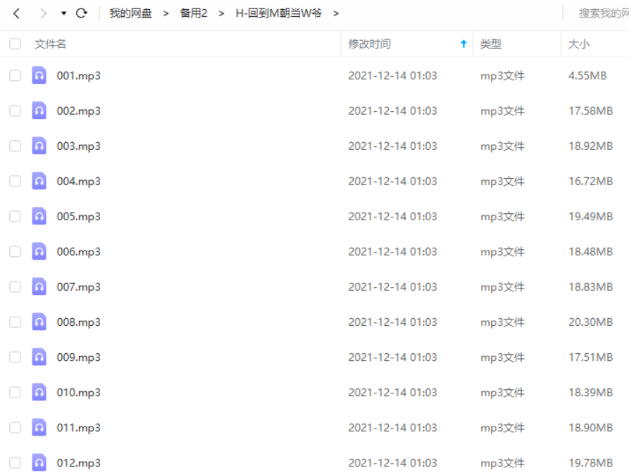 本资源为《回到明朝当王爷》有声小说全(750)集音频合集[MP3]百度云网盘下载,有声小说格式为MP3,资源做压缩包处理,为避免资源丢失,不要在线解压,请先保存在下载解压便可播放试听。