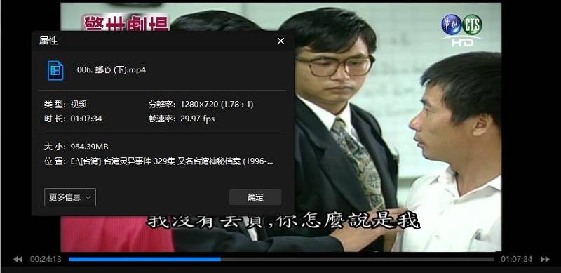 本资源为1996年《台湾灵异事件》全329集国语发音中文字幕合集[MP4]百度云+阿里云网盘下载,本次资源格式为MP4,做压缩包处理,避免资源丢失,不要直接在网盘解压,请先保存下载再解压便可播放。