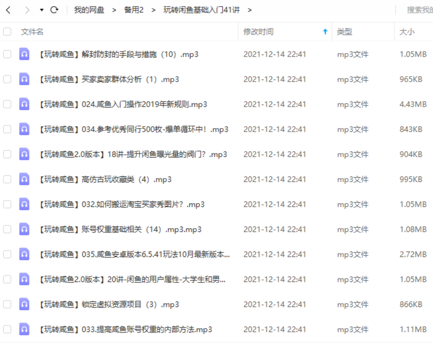 本资源为如何玩转闲鱼?闲鱼基础入门41讲有声读物音频合集[MP3]百度云网盘下载,本次资源格式为MP3,资源做压缩包处理,为避免资源丢失,不要在线解压,请先保存在下载解压便可播放试听。
