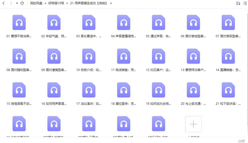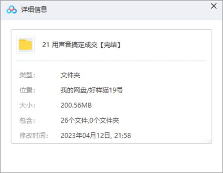本资源为美丽声音课堂-销量成交的秘诀,用声音搞定成交完结版音频合集[MP3]百度网盘下载,本次资源格式为MP3,做压缩包处理,避免资源丢失,不要直接在网盘解压,请先保存下载再解压便可播放。