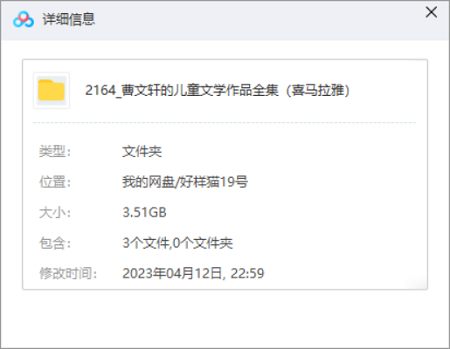 本资源为当代作家《曹文轩的儿童文学作品全集》有声音频合集打包[MP3]百度云网盘下载,本次资源格式为MP3,做压缩包处理,避免资源丢失,不要直接在网盘解压,请先保存下载再解压便可播放。