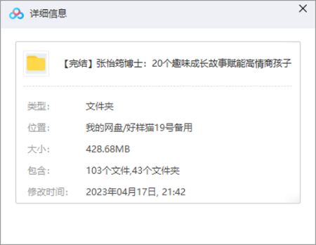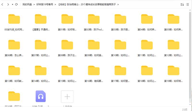 本资源为张怡筠:20个趣味成长故事赋能高情商孩子完结版音频合集[MP3]百度云网盘下载,本次资源格式为MP3,做压缩包处理,避免资源丢失,不要直接在网盘解压,请先保存下载再解压便可播放。