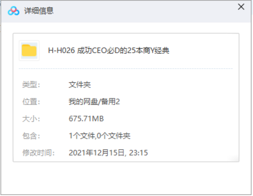 本资源为成功CEO必读的25本商业经典有声音频合集[MP3]百度云网盘下载,本次资源格式为MP3,资源做压缩包处理,为避免资源丢失,不要在线解压,请先保存在下载解压便可播放试听。