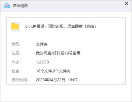 本资源为少儿护眼必修课:预防近视,远离眼疾课程全18节视频合集[MP4]百度云网盘下载,本次资源格式为MP4,做压缩包处理,避免资源丢失,不要直接在网盘解压,请先保存下载再解压便可播放。
