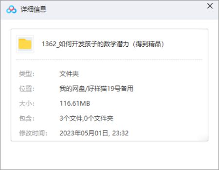 本资源为家长课堂-《如何开发孩子的数学潜力》音频课完结版[M4A]百度云网盘下载,本次资源格式为M4A,做压缩包处理,避免资源丢失,不要直接在网盘解压,请先保存下载再解压便可播放。