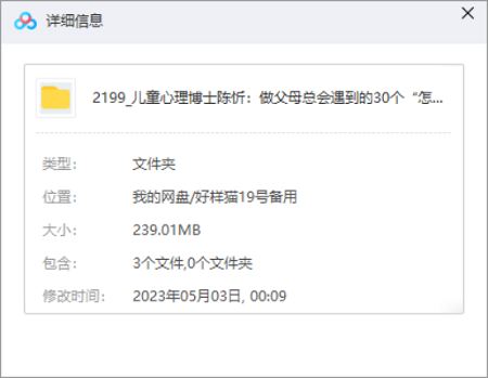 本资源为《儿童心理博士陈忻:0-8岁育儿秘笈》全30节音频课[MP3]百度云网盘下载,本次资源格式为MP3,做压缩包处理,避免资源丢失,不要直接在网盘解压,请先保存下载再解压便可播放。