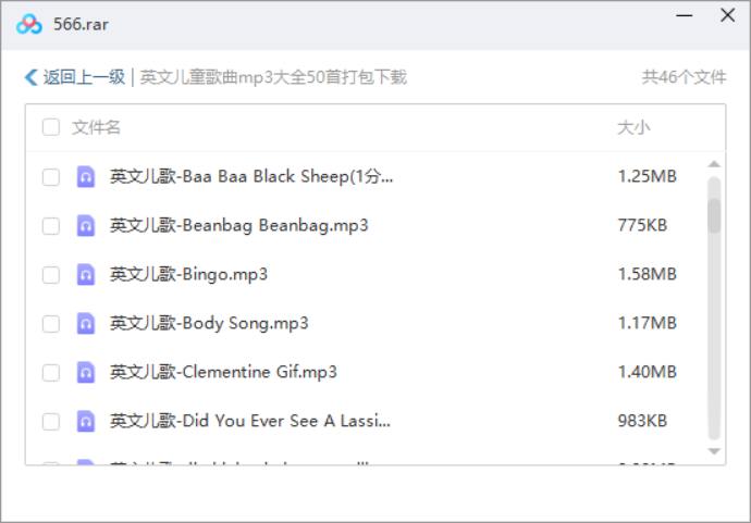 本资源为经典儿歌推荐-50首英文儿童歌曲合集打包[MP3]百度云网盘下载,本次资源格式为MP3,做压缩包处理,避免资源丢失,不要直接在网盘解压,请先保存下载再解压便可播放。