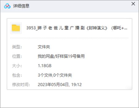 本资源为故事童话-儿童广播剧《狮子老爸:封神演义(哪吒+姜子牙)》完结版音频合集[M4A]百度云网盘下载,本次资源格式为M4A,做压缩包处理,避免资源丢失,不要直接在网盘解压,请先保存下载再解压便可播放。