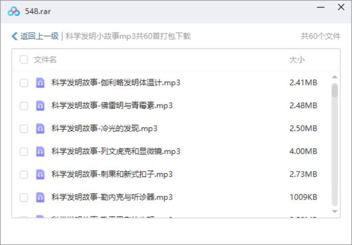 本资源为故事童话-《科学发明小故事》共60节音频合集[MP3]百度云网盘下载,本次资源格式为MP3,做压缩包处理,避免资源丢失,不要直接在网盘解压,请先保存下载再解压便可播放。