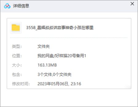 本资源为昌辉叔叔讲故事-《神奇小孩在哪里》完结版音频合集[M4A]百度云网盘下载,本次资源格式为M4A,做压缩包处理,避免资源丢失,不要直接在网盘解压,请先保存下载再解压便可播放。