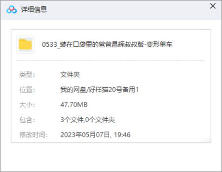 本资源为《装在口袋里的爸爸:变形单车》全24节音频合集[MP3]百度云网盘下载,本次资源格式为MP3,做压缩包处理,避免资源丢失,不要直接在网盘解压,请先保存下载再解压便可播放。